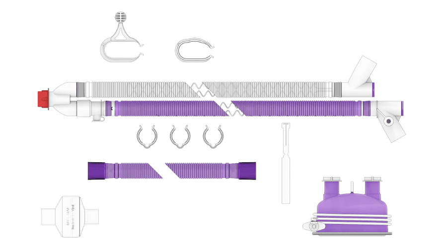 BioCote® antimicrobial silver additive limits the number of microbes on the surface of the ventilator circuit, protecting it from microbial colonisation.